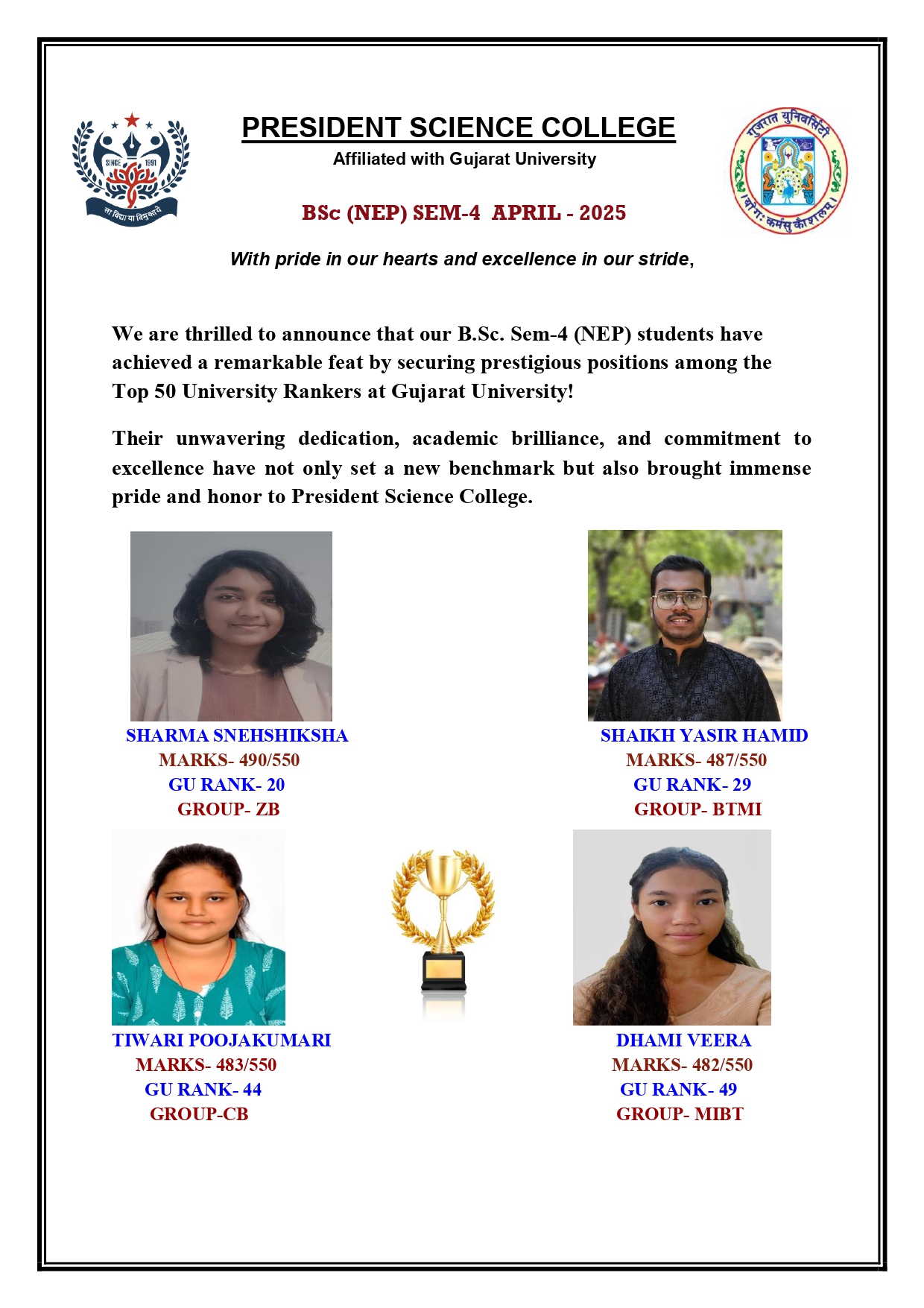 Situated at prominent location of Ahmedabad, the Indias 7th fastest growing city and financial capital of Gujarat close to the most preferred BRTS Corridor in the vicinity Off S.G. Highway, offers graduation of various courses on Science.